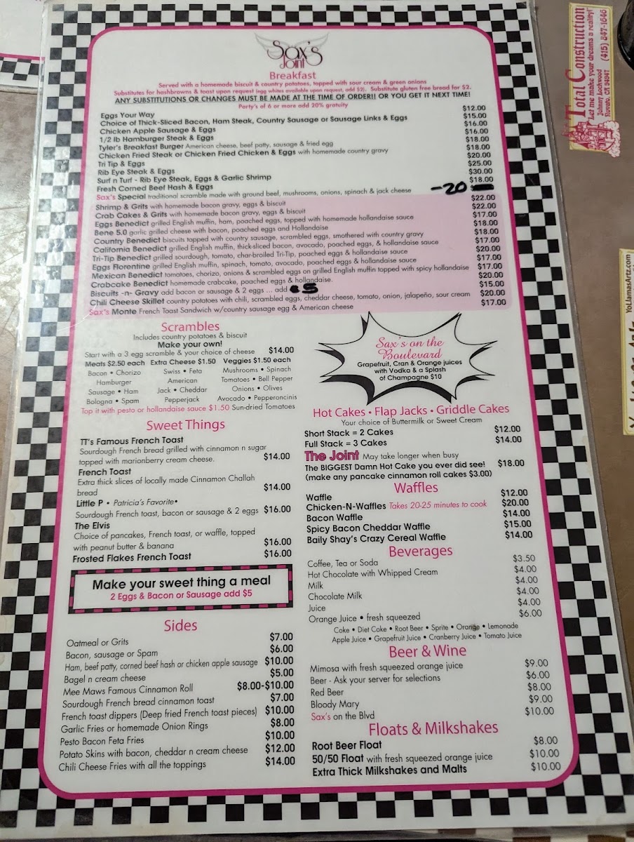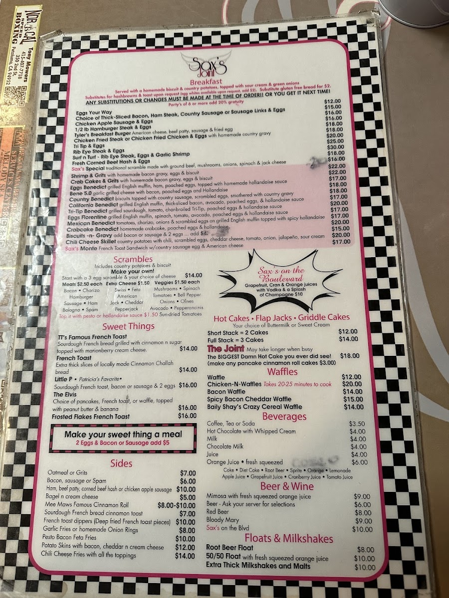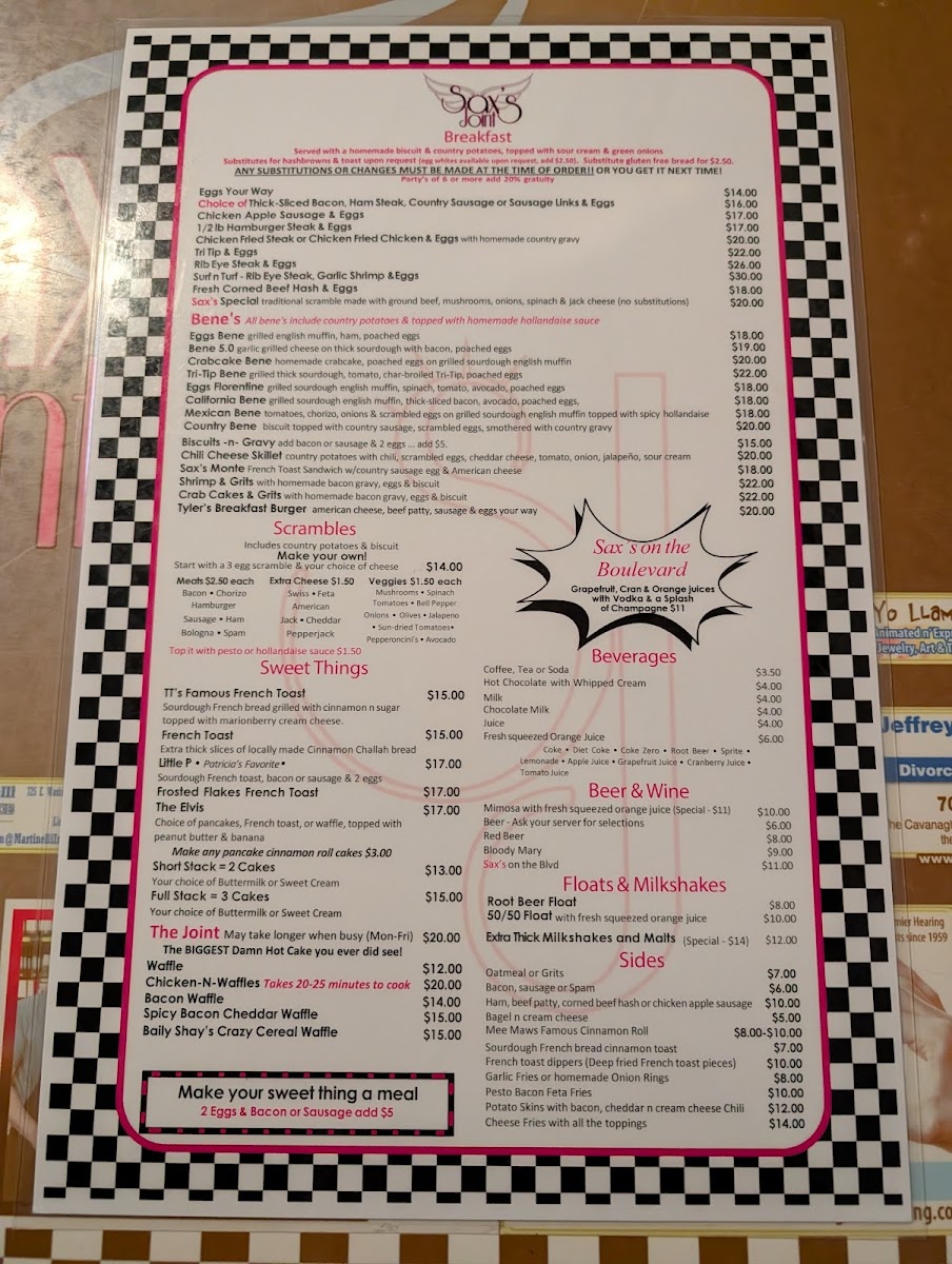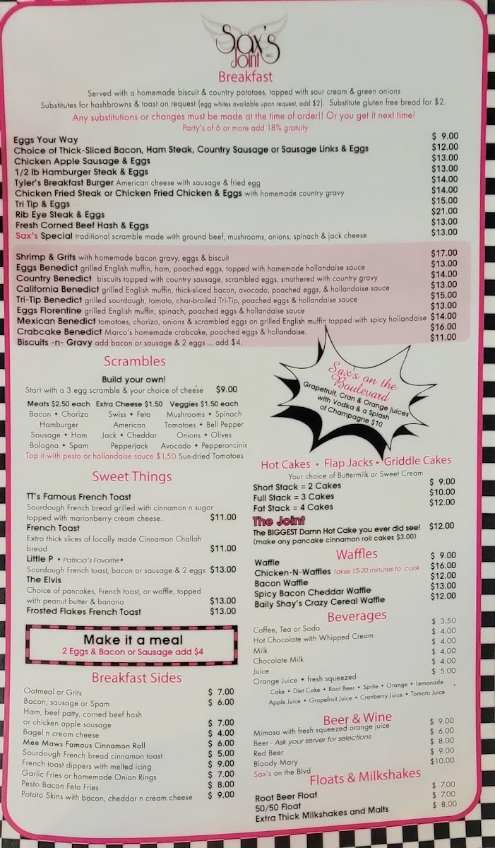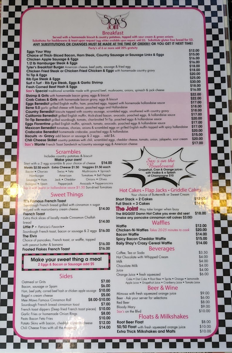 The menu provides a comprehensive choice of hearty breakfast dishes, sweet and savory pancakes and waffles, and beverage options suitable for breakfast and brunch occasions. Customers typically use the menu for casual dining experiences that can range from a quick meal to a relaxed brunch.